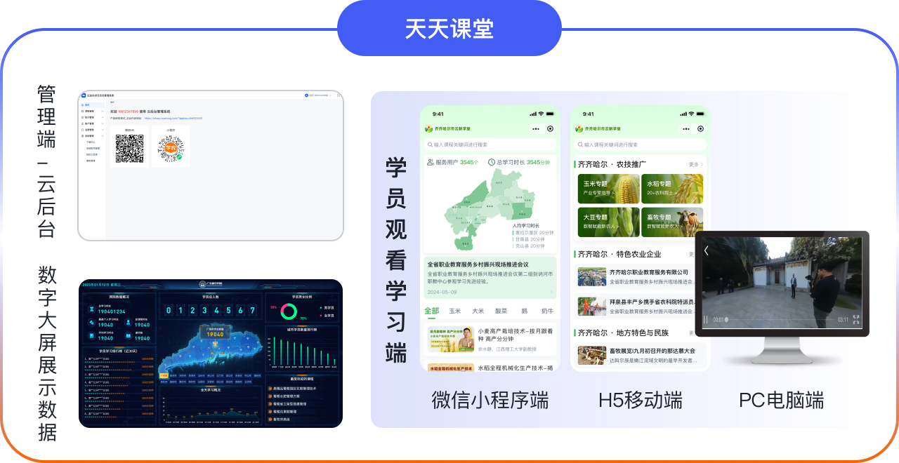 天天学农通过线上线下多元化方式 ,为各省级及地方政府机构培训各类涉农人才,助力乡村振兴发展。